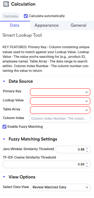 Before setting up controls or writing code, it's essential to understand the Smart Lookup Tool's core functions. The tool is designed to: