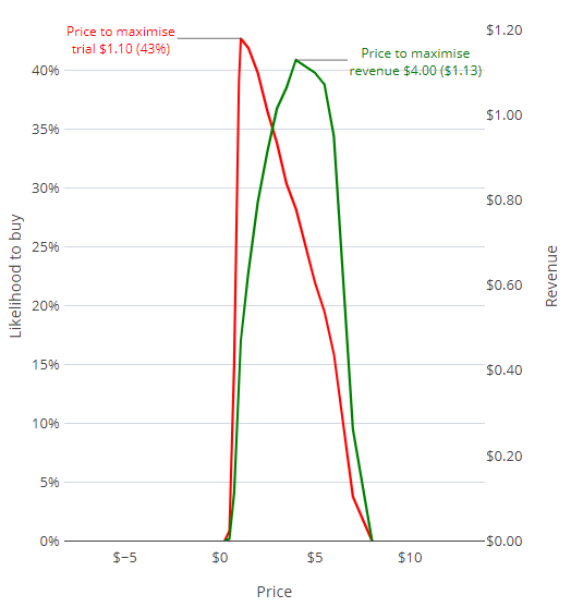 If additional questions about purchasing intent at the cheap and expensive prices are also provided, then the Newton-Miller-Smith (NMS) extension is used to examine how pricing affects demand and revenue:
